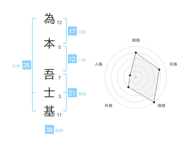 為本 吾士基さんを姓名の画数から五運を鑑定