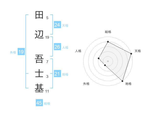 田辺 吾士基さんを姓名の画数から五運を鑑定