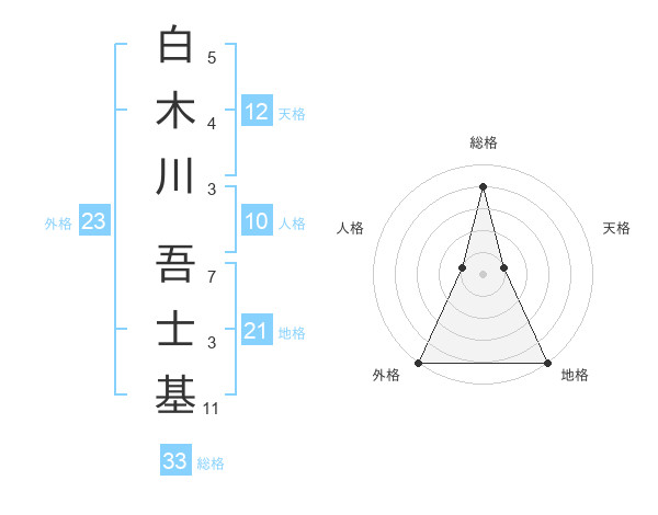 白木川 吾士基さんを姓名の画数から五運を鑑定