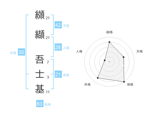 纐纈 吾士基さんの地格は21画の5点!