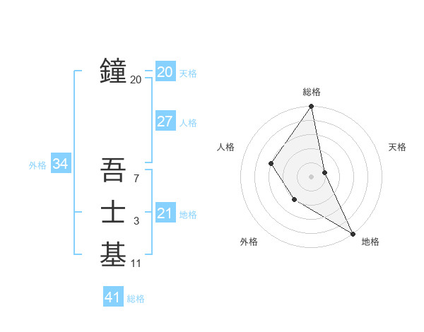 鐘 吾士基さんの地格は21画の5点!