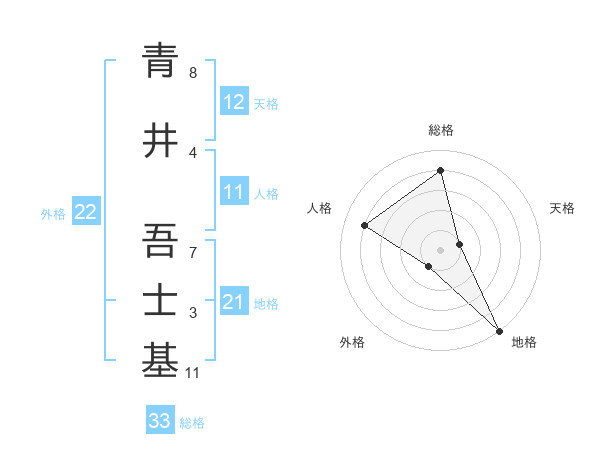 青井 吾士基さんを姓名の画数から五運を鑑定