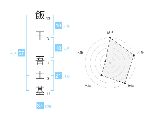 飯干 吾士基さんを姓名の画数から五運を鑑定