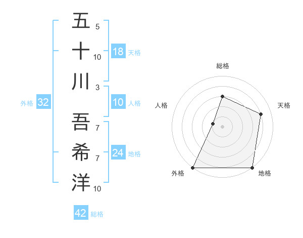 五十川 吾希洋さんの総格は42画の3点!