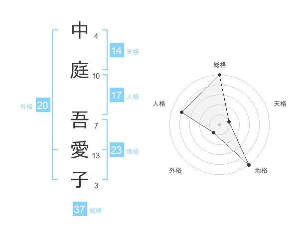 中庭 吾愛子さんを姓名の画数から五運を鑑定