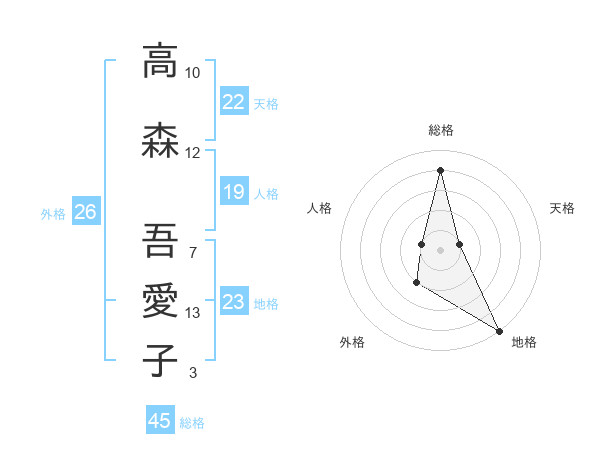 高森 吾愛子さんを姓名の画数から五運を鑑定