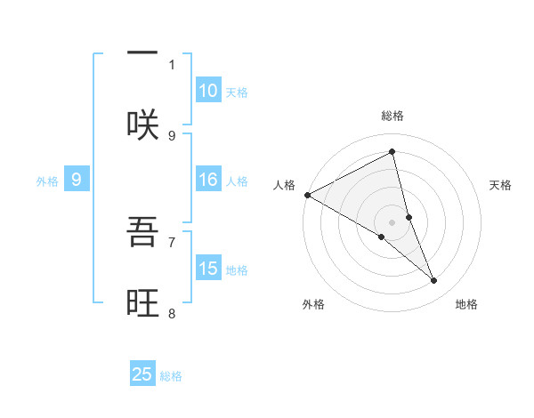 一咲 吾旺さんの総格は25画の4点!