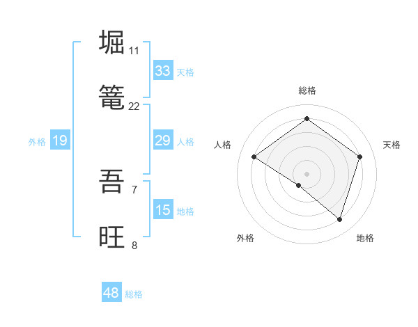 堀篭 吾旺さんを姓名の画数から五運を鑑定