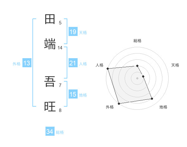 田端 吾旺さんの外格は13画の5点!