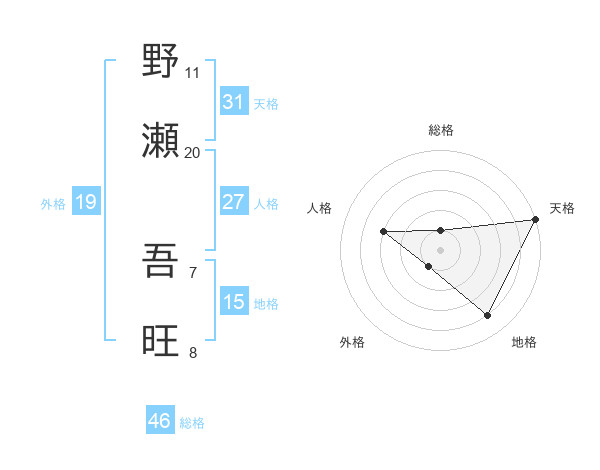 野瀬 吾旺さんの天格は31画の5点!