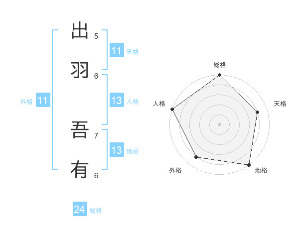 出羽 吾有さんの総格は24画の5点!