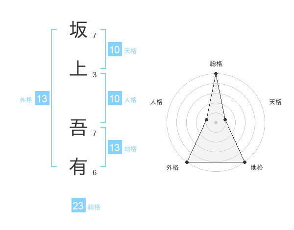 坂上 吾有さんを姓名の画数から五運を鑑定