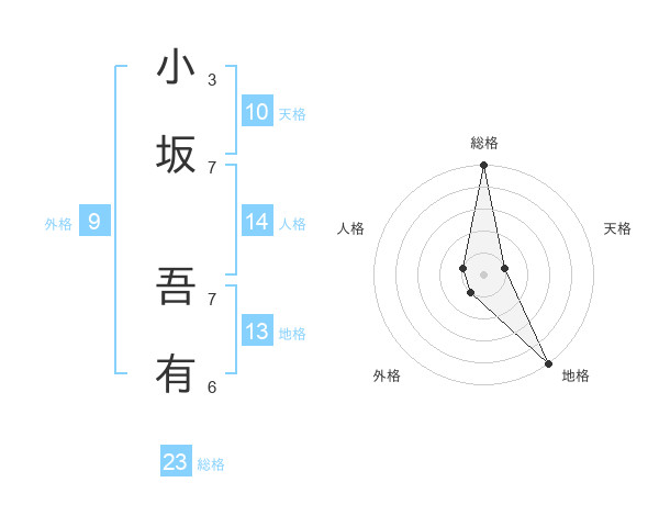 小坂 吾有さんの総格は23画の5点!