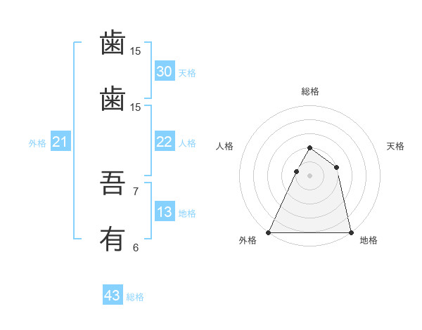 歯歯 吾有さんの総格は43画の2点
