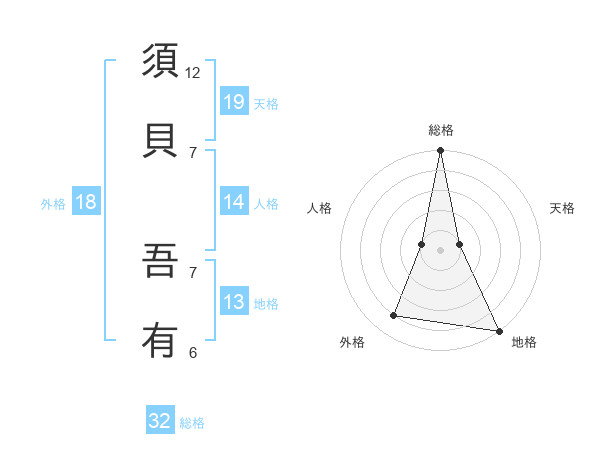 須貝 吾有さんの総格は32画の5点!
