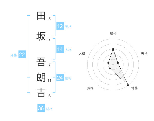 田坂 吾朗吉さんを姓名の画数から五運を鑑定