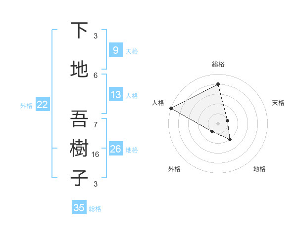 下地 吾樹子さんの総格は35画の4点!