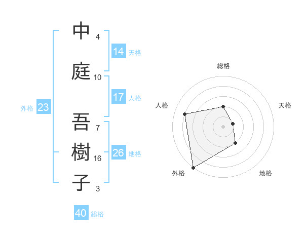 中庭 吾樹子さんを姓名の画数から五運を鑑定
