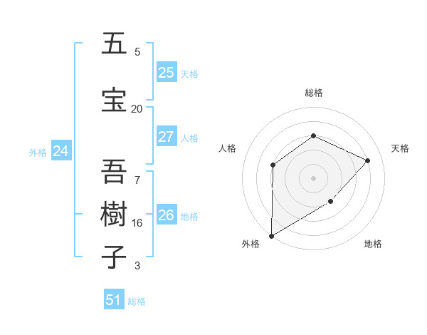 五宝 吾樹子さんを姓名の画数から五運を鑑定