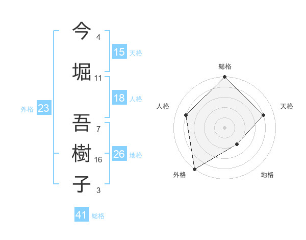 今堀 吾樹子さんを姓名の画数から五運を鑑定