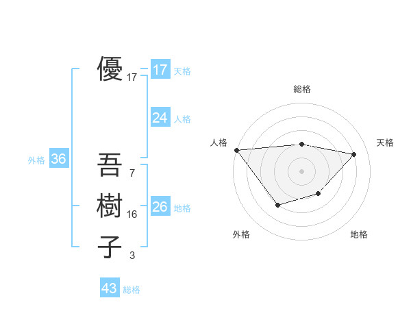 優 吾樹子さんの天格は17画の4点!