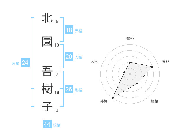 北園 吾樹子さんを姓名の画数から五運を鑑定