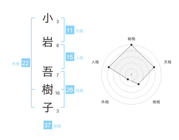 小岩 吾樹子さんの総格は37画の5点!