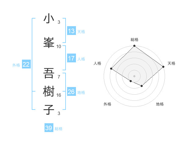小峯 吾樹子さんの総格は39画の5点!