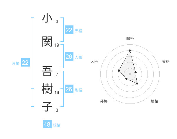 小関 吾樹子さんの総格は48画の4点!