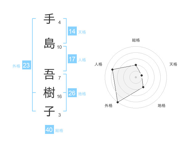 手島 吾樹子さんを姓名の画数から五運を鑑定