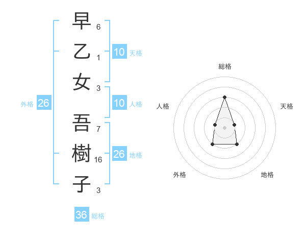 早乙女 吾樹子さんの天格は10画の1点!