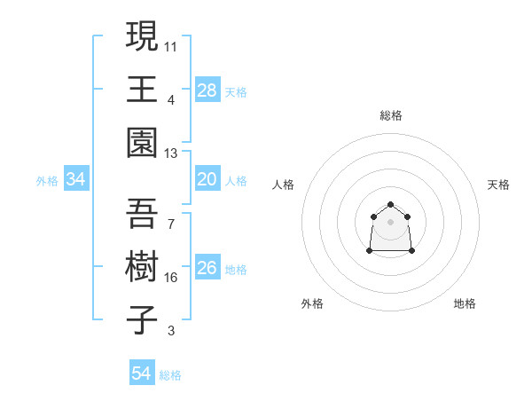 現王園 吾樹子さんを姓名の画数から五運を鑑定