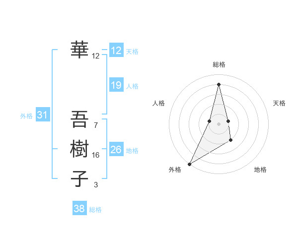華 吾樹子さんを姓名の画数から五運を鑑定