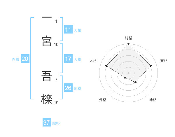 一宮 吾檪さんを姓名の画数から五運を鑑定