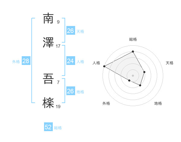 南澤 吾檪さんを姓名の画数から五運を鑑定
