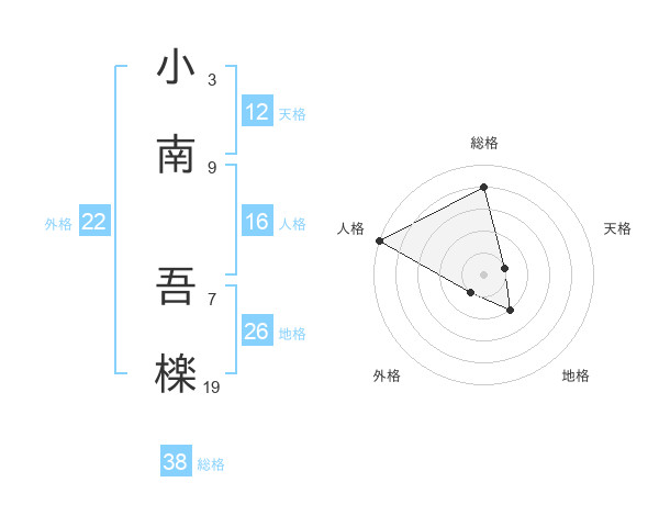 小南 吾檪さんを姓名の画数から五運を鑑定