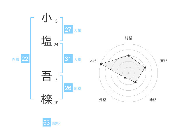小塩 吾檪さんの総格は53画の3点!