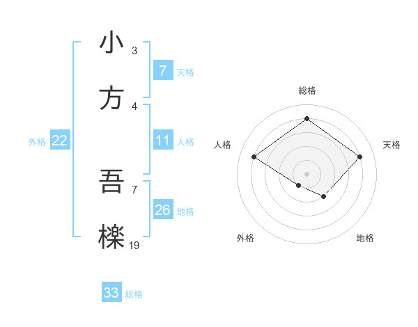 小方 吾檪さんの総格は33画の4点!
