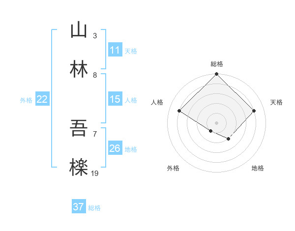 山林 吾檪さんを姓名の画数から五運を鑑定