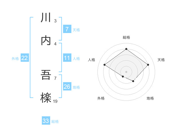 川内 吾檪さんの総格は33画の4点!