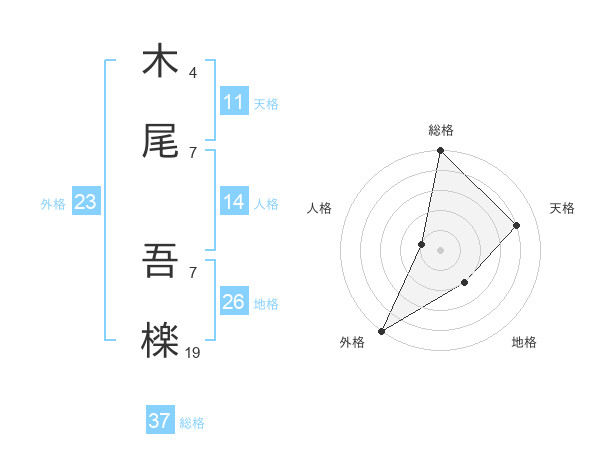 木尾 吾檪さんを姓名の画数から五運を鑑定