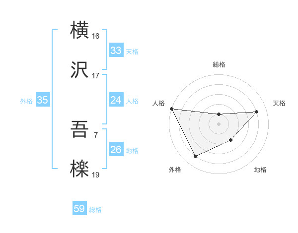 横沢 吾檪さんの総格は59画の1点!