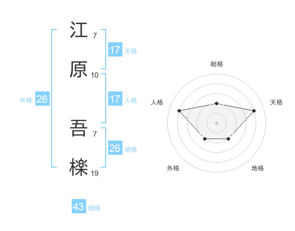 江原 吾檪さんの天格は17画の4点!