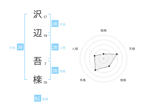 沢辺 吾檪さんを姓名の画数から五運を鑑定