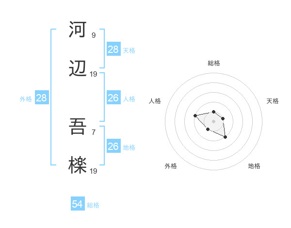 河辺 吾檪さんを姓名の画数から五運を鑑定