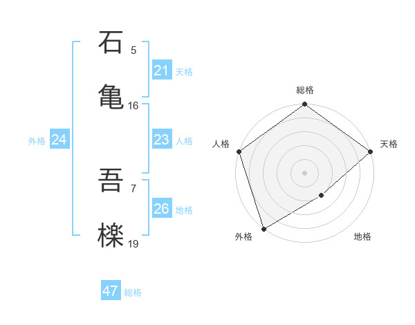 石亀 吾檪さんの総格は47画の5点!
