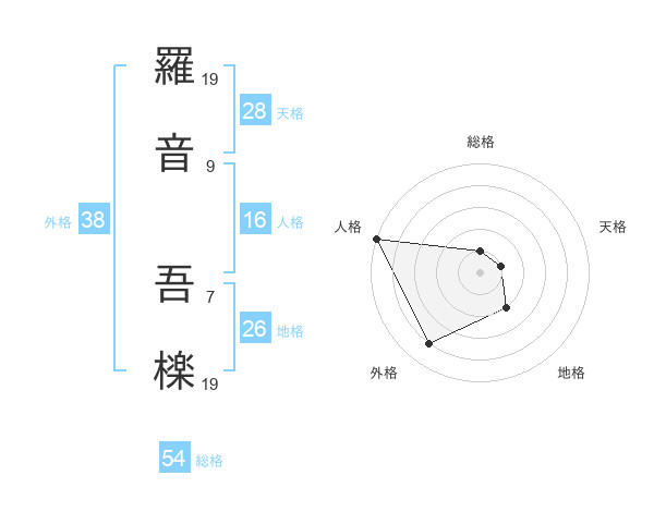 羅音 吾檪さんの外格は38画の4点!