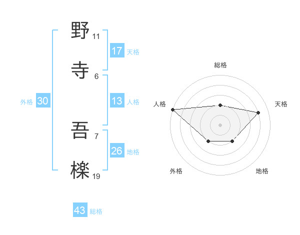 野寺 吾檪さんを姓名の画数から五運を鑑定