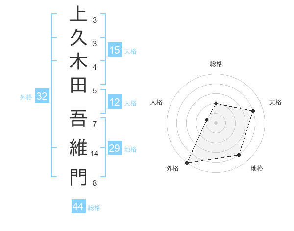 上久木田 吾維門さんを姓名の画数から五運を鑑定