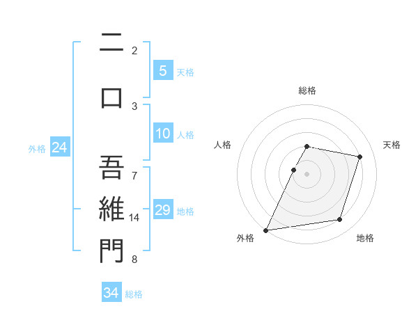 二口 吾維門さんを姓名の画数から五運を鑑定